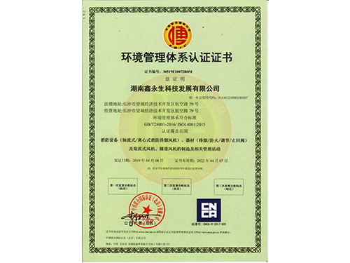 • 環(huán)境管理認(rèn)證體系證書